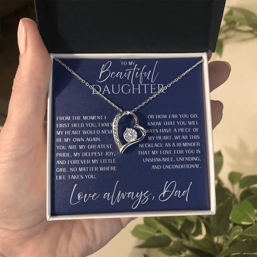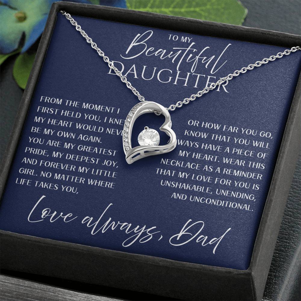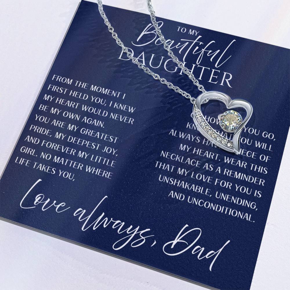 The dazzling Forever Love Necklace is sure to make her heart melt! This necklace features a stunning 6.5mm CZ crystal surrounded by a polished heart pendant embellished with smaller crystals to add extra sparkle and shine. Beautifully crafted with either a white gold or yellow gold finish, be sure to give her a classic gift she can enjoy everyday.