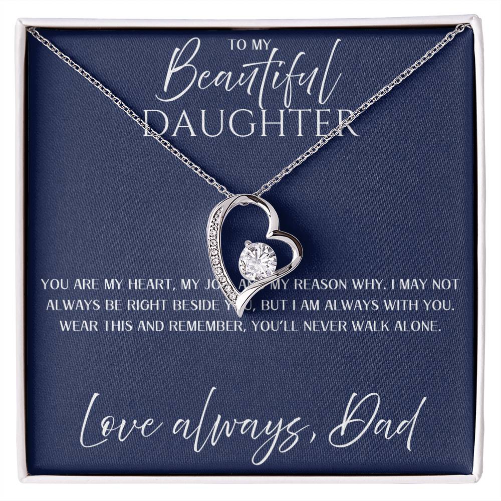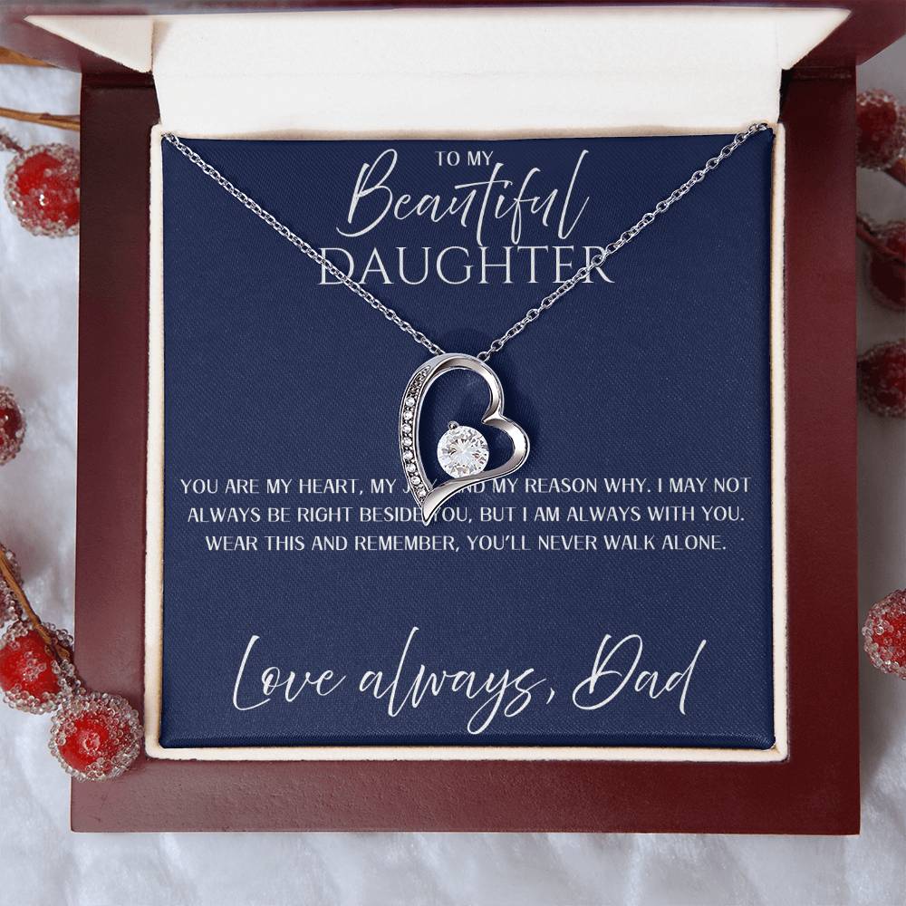 The dazzling Forever Love Necklace is sure to make her heart melt! This necklace features a stunning 6.5mm CZ crystal surrounded by a polished heart pendant embellished with smaller crystals to add extra sparkle and shine. Beautifully crafted with either a white gold or yellow gold finish, be sure to give her a classic gift she can enjoy everyday.
